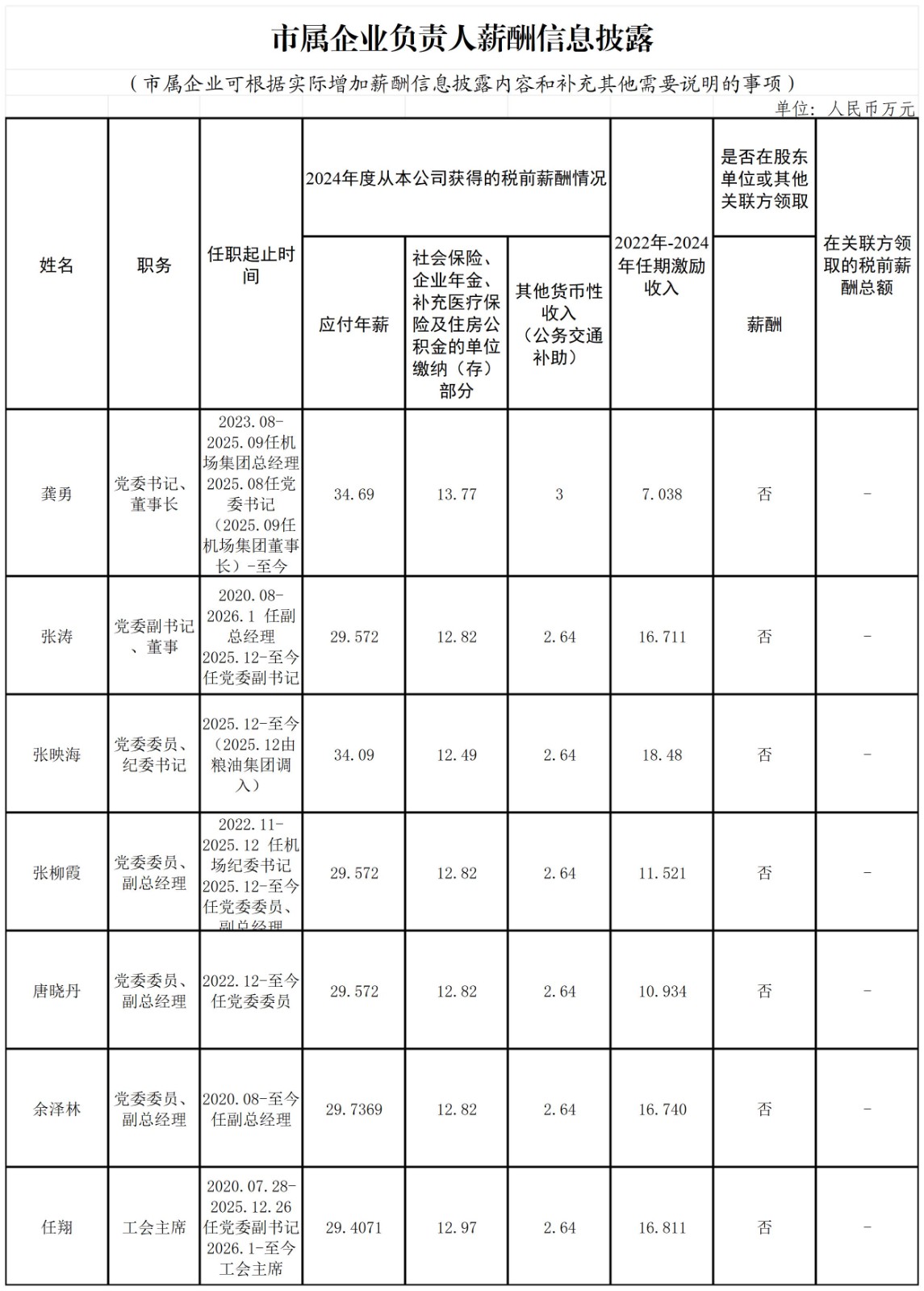 市屬企業(yè)負(fù)責(zé)人薪酬信息披露